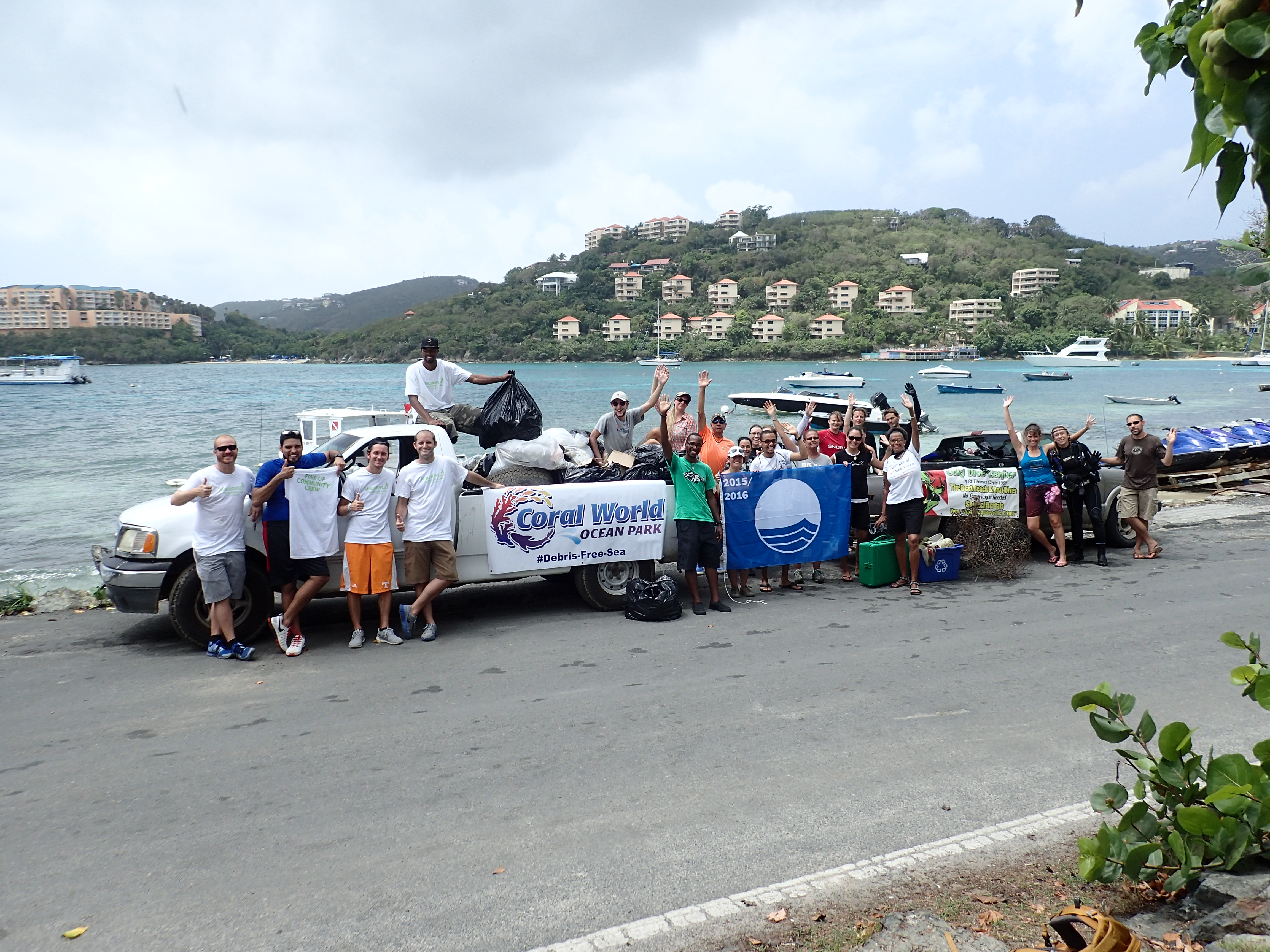 Volunteer divers and snorkelers met at Coki Dive Center for equipment and water provided free of charge. Land volunteers met in the Coral World parking area. The first 30 participants will receive a free day pass to Coral World Ocean Park.